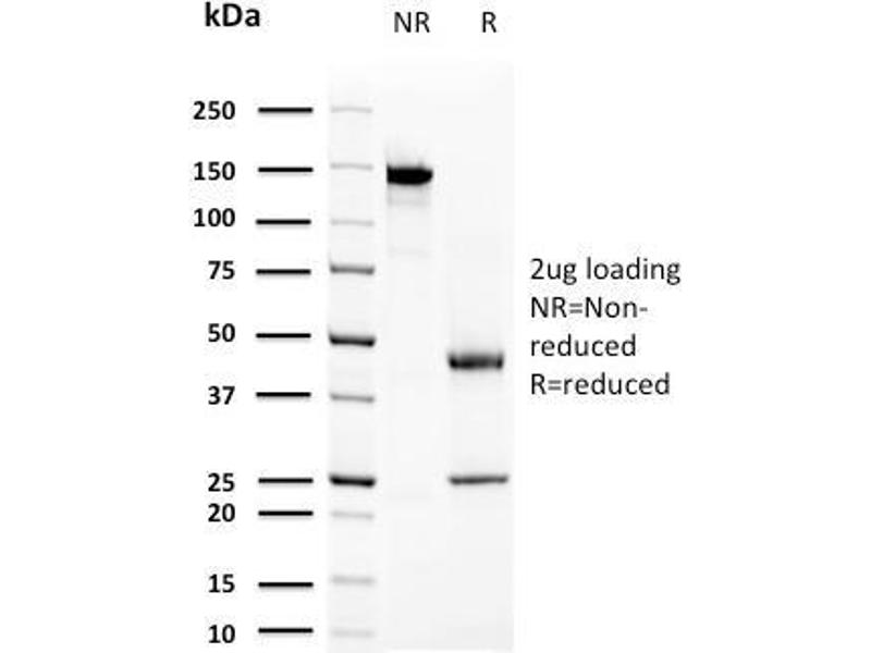 Known Application: Immunohistochemistry (Formalin-fixed) (1-2 μg/mL for 30 min at RT)(Staining of formalin-fixed tissues requires boiling tissue sections in 10 mM Citrate Buffer, pH 6.0, for 10-20 min followed by cooling at RT for 20 minutes)Optimal dilution for a specific application should be determined.