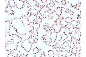 Known Application: Immunohistochemistry (Formalin-fixed) (1-2 μg/mL for 30 minutes at RT)(Staining of formalin-fixed tissues requires boiling tissue sections in 10 mM citrate buffer, pH 6.0, for 10-20 min followed by cooling at RT for 20 minutes)Optimal dilution for a specific application should be determined.