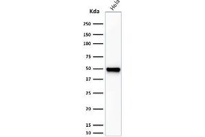 Positive Control: K562, HeLa, MCF-7, PC-3 or BEWO cells. Hodgkin's lymphoma, Ovarian or Testicular Carcinoma.