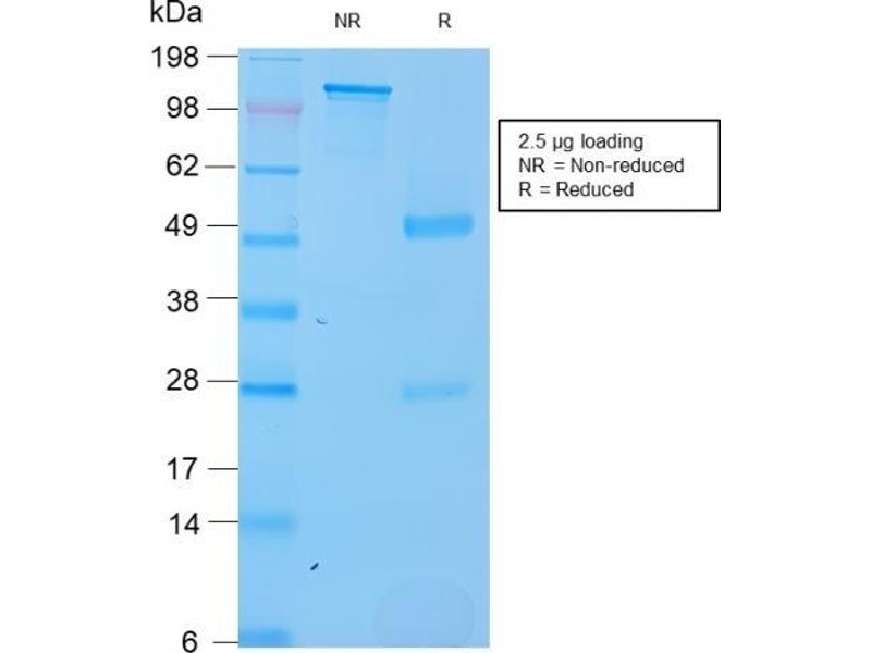 Known Application: ELISA (Use Ab at 2-4 μg/mL for coating) (Order Ab without BSA), Western Blot (1-2 μg/mL), Immunohistochemistry (Formalin-fixed) (1-2 μg/mL for 30 min at RT)(Staining of formalin-fixed tissues requires boiling tissue sections in 10 mM Citrate Buffer, pH 6.0, for 10-20 min followed by cooling at RT for 20 minutes)Optimal dilution for a specific application should be determined.