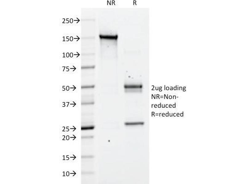 Known Application: Western Blot (1-2 μg/mL), Flow Cytometry (0.5-1 μg/million cells), Immunofluorescence (1-2 μg/mL), ,Immunohistochemistry (Formalin-fixed) (0.5-1 μg/mL for 30 minutes at RT),(Staining of formalin-fixed tissues requires boiling tissue sections in 10 mM citrate buffer, pH 6.0, for 10-20 min followed by cooling at RT for 20 minutes),Optimal dilution for a specific application should be determined.