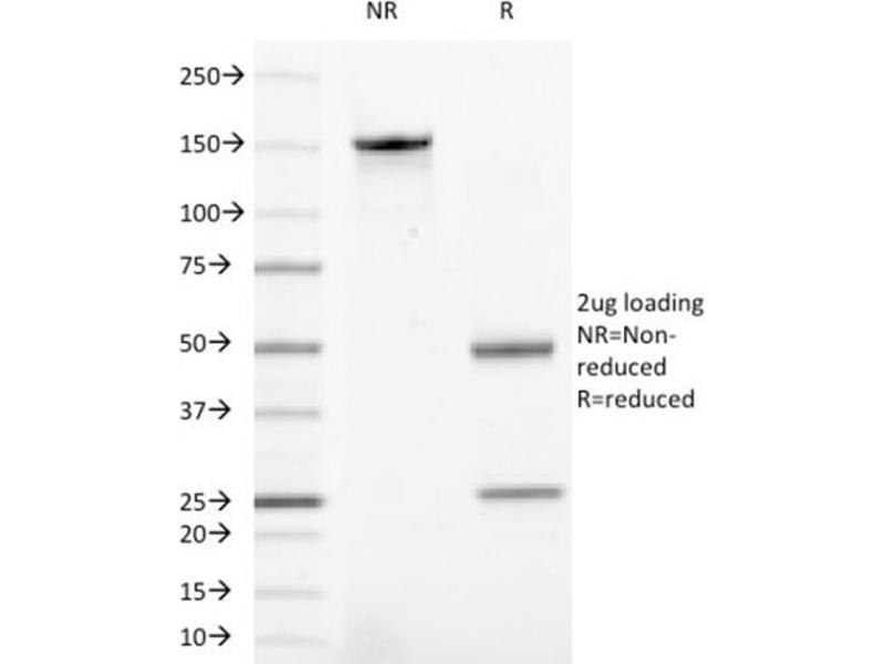 Known Application: Western Blot (1-2 μg/mL), Flow Cytometry (1-2 μg/million cells), Immunofluorescence (1-2 μg/mL), Immunohistochemistry (Formalin-fixed) (1-2 μg/mL for 30 minutes at RT),(Staining of formalin-fixed tissues requires boiling tissue sections in 10 mM citrate buffer, pH 6.0, for 10-20 min followed by cooling at RT for 20 minutes),Optimal dilution for a specific application should be determined.