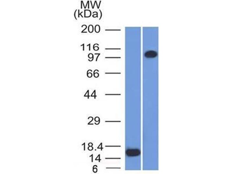 Known Application: ELISA (Use Ab at 2-4 μg/mL for coating) (Order Ab without BSA), Western Blot (1-2 μg/mL), Immunohistochemistry (Formalin-fixed) (1-2 μg/mL for 30 minutes at RT)(Staining of formalin-fixed tissues is enhanced by boiling tissue sections in 10 mM Tris buffer with 1 mM EDTA, pH 9.0, for 10-20 min followed by cooling at RT for 20 minutes)Optimal dilution for a specific application should be determined.