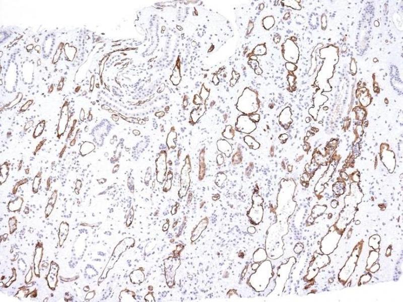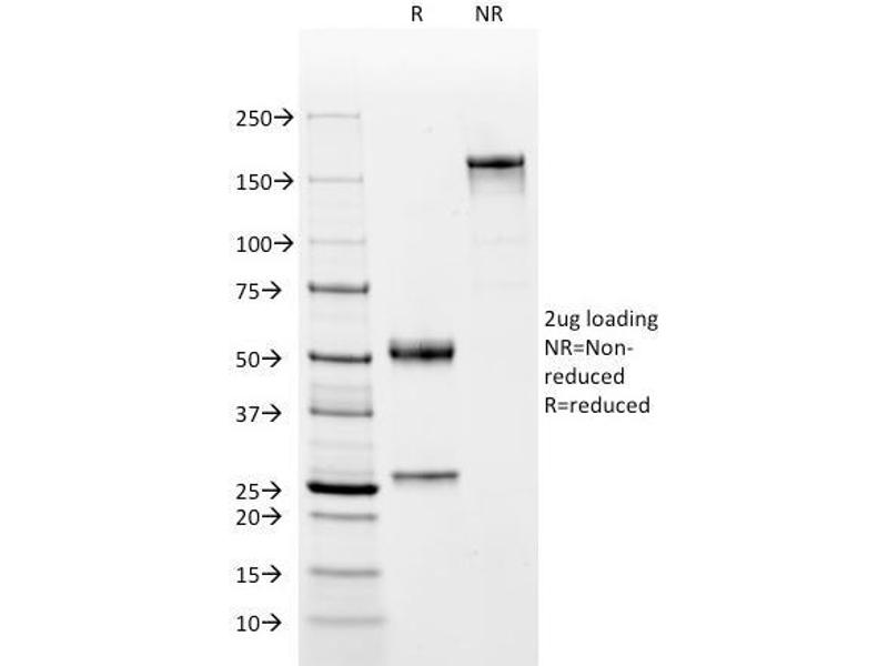 Known Application: ELISA (For coating use Ab at 1-2 μg/mL order Ab without BSA), Immunohistochemistry (Formalin-fixed) (1:200-1:400 for 30 minutes at RT)(Staining of formalin-fixed tissues requires boiling tissue sections in 1 mM EDTA, pH 7.5-8.5, for 10-20 min followed by cooling at RT for 20 minutes)Optimal dilution for a specific application should be determined.