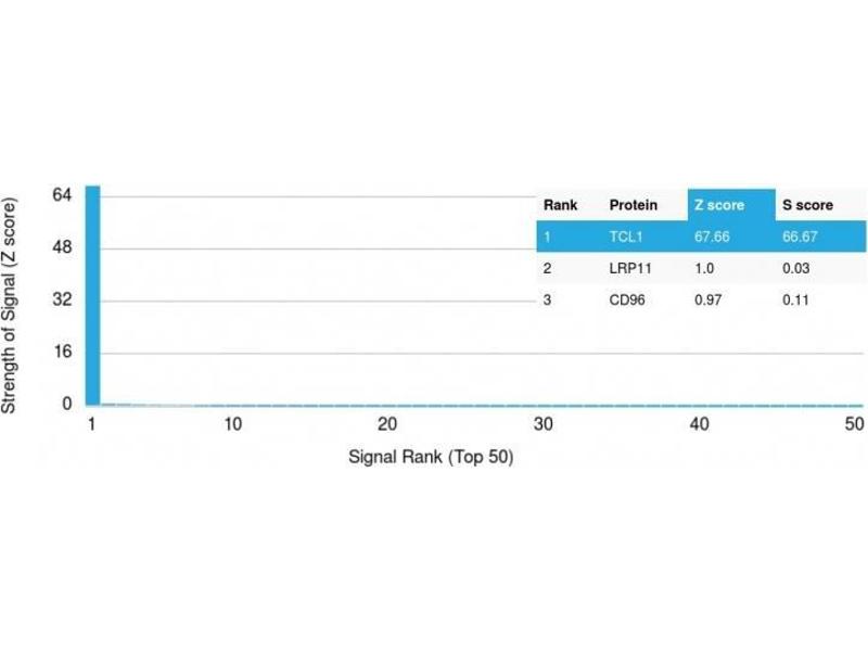- Recombinant fragment (around aa 2-109) of human TCL1 protein (exact sequence is proprietary)