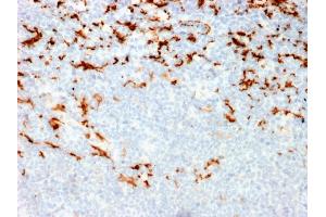 - This MAb recognizes a protein of 140 kDa, identified as CD163. It has been identified as an acute phase-regulated transmembrane protein whose function is to mediate the endocytosis of haptoglobin-hemoglobin complexes. This receptor is expressed on the surface of monocytes with low expression and on tissue macrophages, histiocytes with high expression. Staining with anti-CD163 has been helpful to distinguish synovial macrophages from synovial intimal fibroblasts in rheumatoid arthritis, where its specificity for macrophages was found to be superior to that of anti-CD68. Increased levels of CD163 were also detected in patients with microbial infections and myelomonocytic leukemias. Anti-CD163 is of considerable value for selective identification of monocytes and macrophages at a certain stage of differentiation and is suitable for diagnosing myelomonocytic or monocytic leukaemia and neoplasms of true histiocytic origin. CD163 is positive in skin (histiocytes), gut, Kupffer cells, a few alveolar macrophages, macrophages in the placenta, and in macrophages in inflamed tissues including tumor tissue.