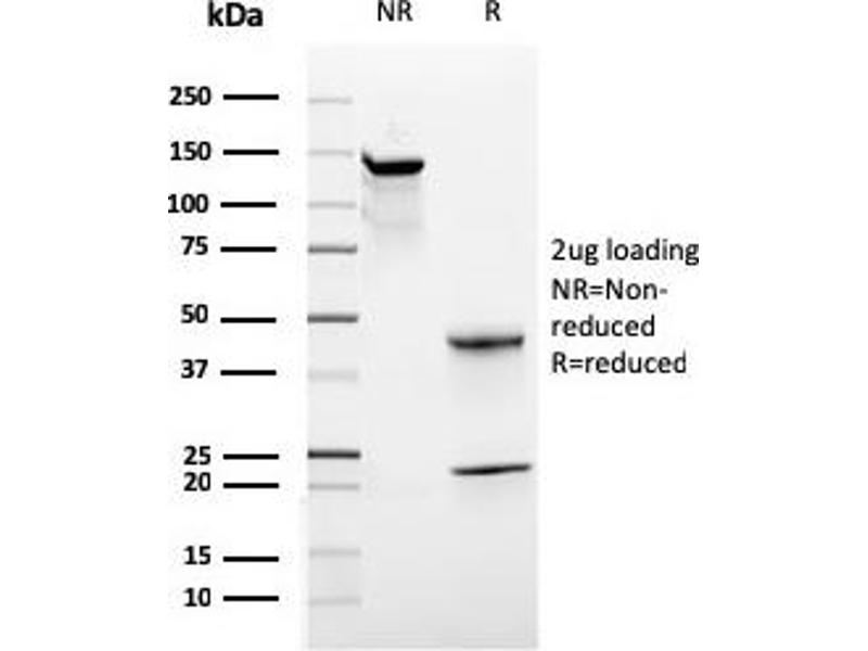 Known Application: Functional Studies (Order Ab without BSA & Azide), Western Blot (1-2 μg/mL), Flow Cytometry (1-2 μg/million cells), Immunofluorescence (1-2 μg/mL), Immunohistochemistry (Formalin-fixed) (1-2 μg/mL for 30 minutes at RT)(Staining of formalin-fixed tissues requires boiling tissue sections in 10 mM citrate buffer, pH 6.0, for 10-20 min followed by cooling at RT for 20 minutes)Optimal dilution for a specific application should be determined.