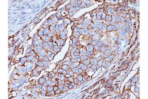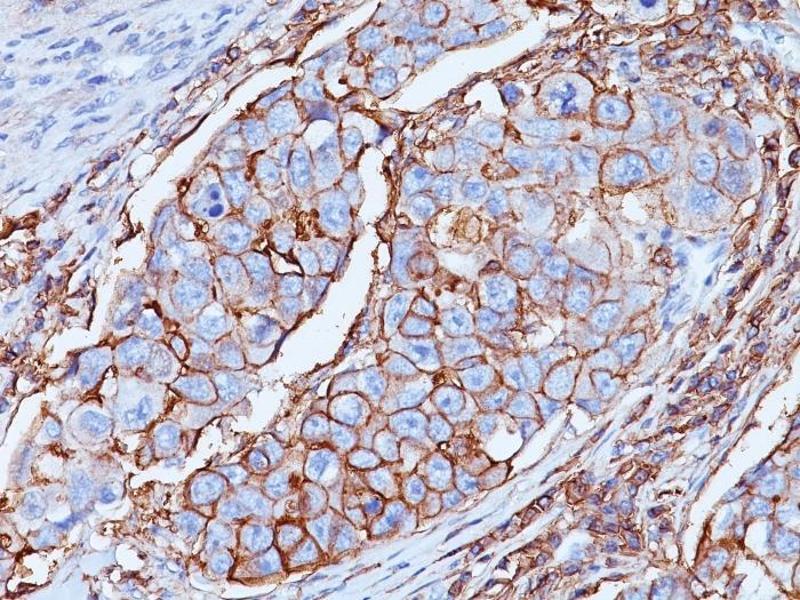 - Recognizes a cell surface glycoprotein of 80-95 kDa (CD44) on lymphocytes, monocytes, and granulocytes (Leucocyte Typing Workshop V). Its epitope is resistant to digestion by trypsin and chymotrypsin. The CD44 family of glycoproteins exists in a number of variant isoforms, the most common being the standard 85-95 kDa or hematopoietic variant (CD44s). Higher molecular weight isoforms are described in epithelial cells (CD44v), which are believed to function in intercellular adhesion and stromal binding. CD44 immunostaining is commonly used for the discrimination of urothelial transitional cell carcinoma in-situ from non-neoplastic changes in the urothelium.