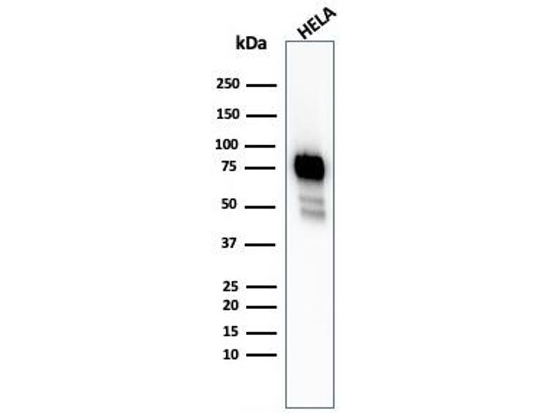 Known Application: Immunohistochemistry (Formalin-fixed) (0.25-0.5 μg/mL for 30 minutes at RT)(Staining of formalin-fixed tissues requires boiling tissue sections in 10 mM citrate buffer, pH 6.0, for 10-20 min followed by cooling at RT for 20 minutes)Optimal dilution for a specific application should be determined.