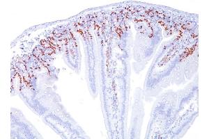 Known Application: Flow Cytometry (0.5-1 μg/million cells), Immunofluorescence (0.5-1 μg/mL), Immunohistochemistry (Formalin-fixed) (0.5-1 μg/mL for 30 minutes at RT) (Use Ab at 1 μg/mL for 30 minute at RT)[For staining of formalin-fixed tissues, incubate sections in 4N HCl for 30 minutes at RT followed by digestion with trypsin at 1 mg/mL PBS, 10 min at 37oC Optimal dilution for a specific application should be determined.