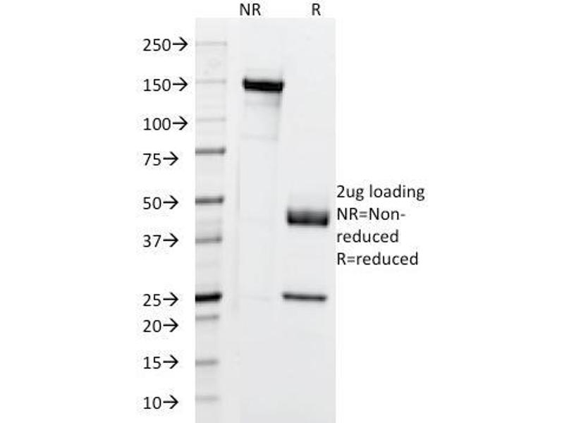 Known Application: Immunohistochemistry (Formalin-fixed) (0.1-0.2 μg/mL for 30 min at RT)(Staining of formalin-fixed tissues requires boiling tissue sections in 10 mM citrate buffer, pH 6.0, for 10-20 min followed by cooling at RT for 20 minutes)Optimal dilution for a specific application should be determined.