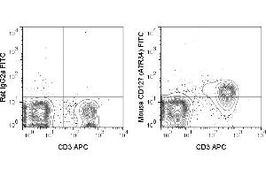 - The A7R34 antibody is specific for mouse CD127, a 60-90 kDa cell surface protein also known as the Interleukin-7 Receptor alpha chain, or IL-7R alpha. CD127 is typically expressed at the cell surface as a heterodimer with the common gamma chain (CD132). This complex acts as the functional receptor for IL-7, a cytokine important in T and B cell development, and in mature T cell homeostasis. A second cytokine known as Thymic Stromal Lymphopoietin (TSLP) also binds to a receptor complex of CD127 and the TSLPR chain to trigger activation of dendritic cells, and is involved in B cell development, allergy and autoimmunity.The A7R34 antibody may be used as a phenotypic marker for CD127 on immature B cells, on subsets of thymocytes which are double negative (CD4-CD8- ) or single positive (CD4+ or CD8+), and at low levels on mature, peripheral T cells. CD127 is a key marker, when used in combination with CD4 and CD25, to distinguish Treg and effector/memory Treg populations known as T(REM).