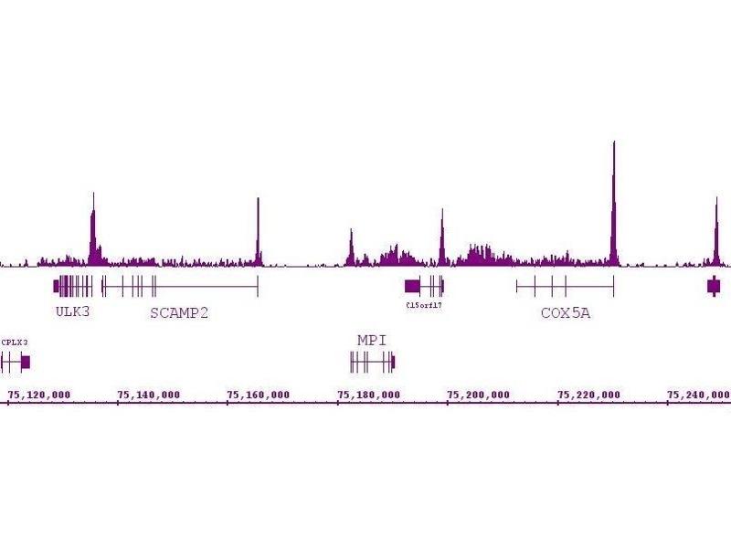This antibody was raised against a synthetic peptide containing phospho-serine 2 and phospho-serine 5 of the CTD of human RNA Polymerase II.