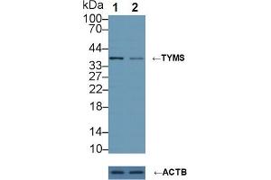 - The antibody is a rabbit polyclonal antibody raised against TYMS. It has been selected for its ability to recognize TYMS in immunohistochemical staining and western blotting.