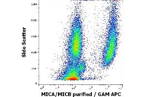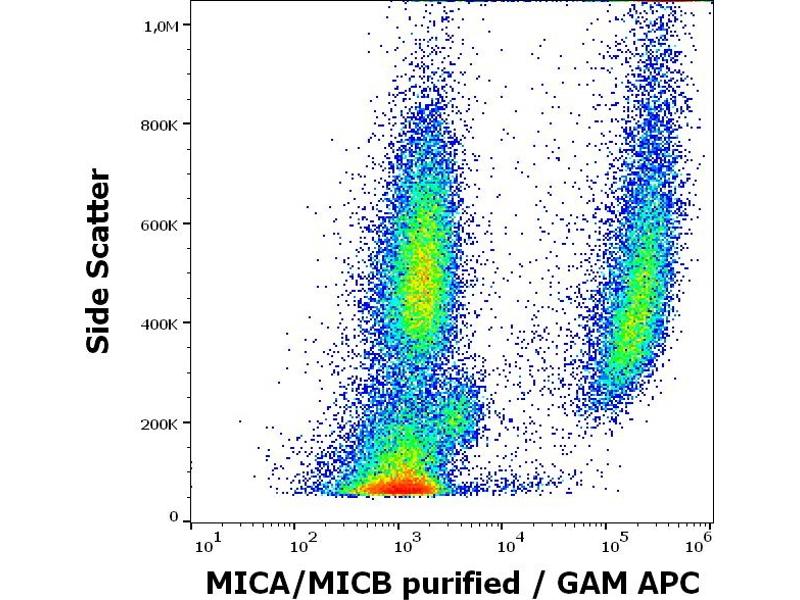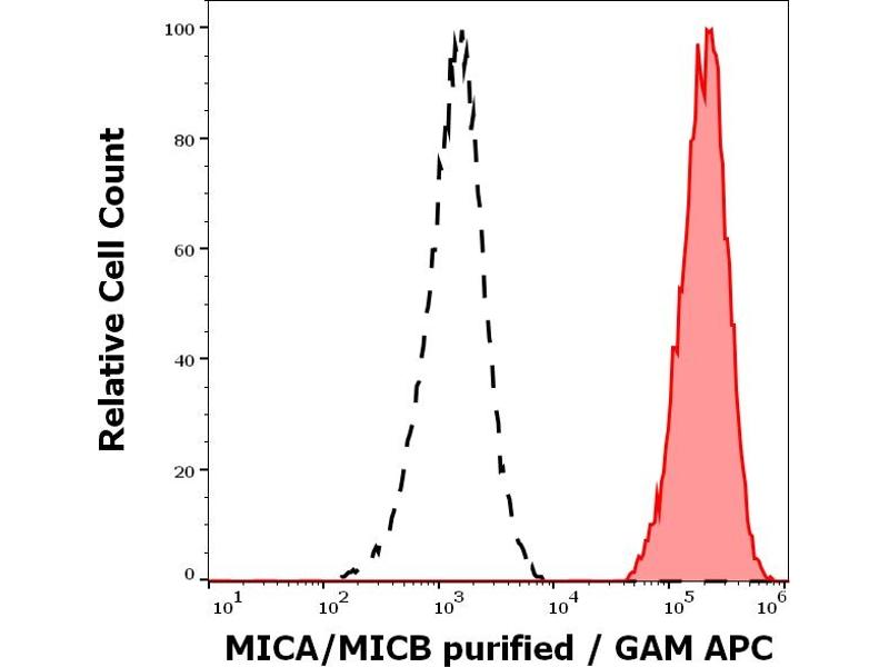 The mouse monoclonal antibody 6D4 recognizes a common extracellular epitope on MICA and MICB glycoproteins, transmembrane ligands of CD314 (NKG2D), and is able to block CD314-mediated activation of NK cells and cytotoxic T cells.