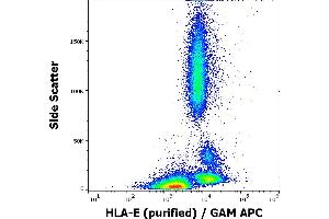 Major histocompatibility complex, class I, E,HLA-E (human leukocyte antigen E) is a non-classical MHC I antigen, which is important for dialogue with NK cells and their regulation through interaction with CD94/NKG2 receptor. Like other MHC I molecules, transmembrane HLA-E molecule (45 kDa) associates with beta2 microglobulin. Unlike HLA-G, expression of HLA-E molecules is not so restricted, but it has been detected at least at mRNA level in virtually all cells and tissues examined. In peripheral blood, HLA-E protein is expressed at least in all mononuclear cells, but in different quantity (B cells and monocytes more than T cells and NK cells).,HLA class I histocompatibility antigen, alpha chain E, MHC class I antigen E