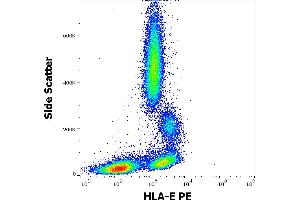 Major histocompatibility complex, class I, E,HLA-E (human leukocyte antigen E) is a non-classical MHC I antigen, which is important for dialogue with NK cells and their regulation through interaction with CD94/NKG2 receptor. Like other MHC I molecules, transmembrane HLA-E molecule (45 kDa) associates with beta2 microglobulin. Unlike HLA-G, expression of HLA-E molecules is not so restricted, but it has been detected at least at mRNA level in virtually all cells and tissues examined. In peripheral blood, HLA-E protein is expressed at least in all mononuclear cells, but in different quantity (B cells and monocytes more than T cells and NK cells).,HLA class I histocompatibility antigen, alpha chain E, MHC class I antigen E