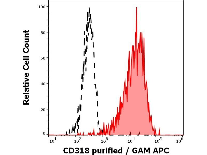 CUB domain containing protein 1,CD318 (CUB domain containing protein 1) is a complement domains-containing transmembrane glycoprotein, which takes part in early hematopoiesis. It is expressed on CD34+CD133+ bone marrow cells, keratinocytes, and in human colorectal and breast cancers. It is being used as a marker of mesenchymal stem-like cells, neural progenitor cells, and also as an independent marker for the diagnosis of myeloid leukemias.,CDCP1, SIMA135, TRASK