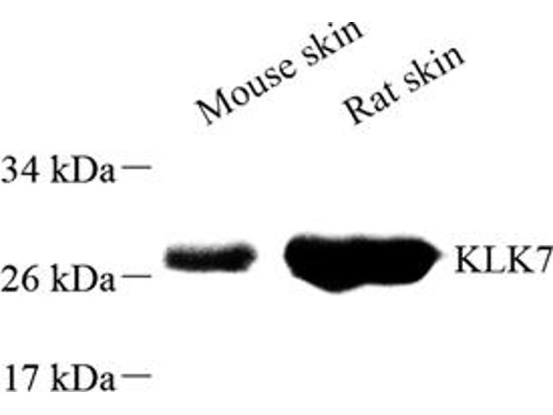 L’anticorps anti-Kallikrein 7 Polyclonal Lapin est utilisé pour la détection de Kallikrein 7 dans des échantillons de Rat et Souris. Il a été validé pour IHC et IF.