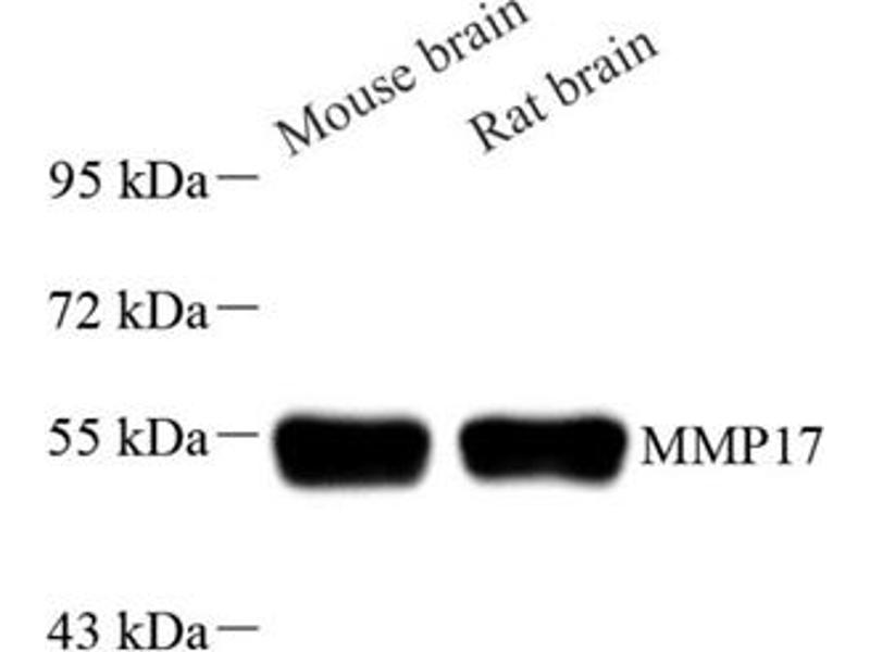 L’anticorps Lapin Polyclonal anti-MMP17 a été validé pour WB. Il convient pour détecter MMP17 dans des échantillons de Souris et Rat.