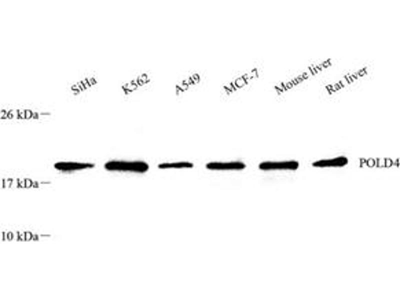 L’anticorps anti-POLD4 Polyclonal Lapin est utilisé pour la détection de POLD4 dans des échantillons de Humain, Souris et Rat. Il a été validé pour WB.