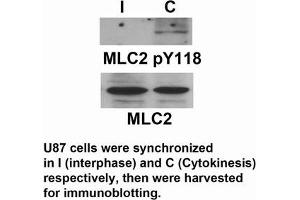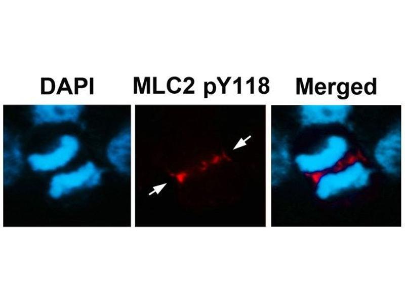 Background: Myosin regulatory subunit that plays an important role in regulation of both smooth muscle and nonmuscle cell contractile activity via its phosphorylation. Implicated in cytokinesis, receptor capping, and cell locomotion. 1) Xia, Y. et al. c-Jun downregulation by HDAC3-dependent transcriptional repression promotes osmotic stress-induced cell apoptosis. Mol. Cell 25, 219–232 (2007).2)Vander Heiden, M. G. et al. Evidence for an alternative glycolytic pathway in rapidly proliferating cells. Science 329, 1492–1499 (2010).3) Fang, D. et al. Phosphorylation of beta-catenin by AKT promotes beta-catenin transcriptional activity. J. Biol. Chem. 282, 11221–11229 (2007).