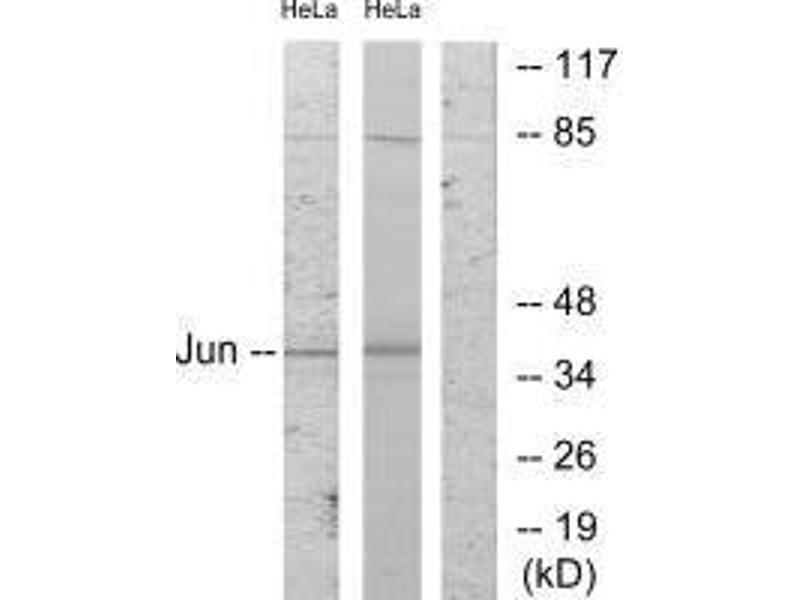 Kyriakis J M, et al. (1994) Nature. 369: 156-160.Aliases: Activator protein 1 antibody, AP 1 antibody, AP-1 antibody, AP1 antibody, cJun antibody, Enhancer Binding Protein AP1 antibody, Jun Activation Domain Binding Protein antibody, JUN antibody, Jun oncogene antibody, JUN protein antibody, Jun proto oncogene antibody, JUN_HUMAN antibody, JUNC antibody, Oncogene JUN antibody, p39 antibody, Proto oncogene c jun antibody, Proto oncogene cJun antibody, Proto-oncogene c-jun antibody, Transcription Factor AP 1 antibody, Transcription factor AP-1 antibody, Transcription Factor AP1 antibody, V jun avian sarcoma virus 17 oncogene homolog antibody, V jun sarcoma virus 17 oncogene homolog (avian) antibody, V jun sarcoma virus 17 oncogene homolog antibody, V-jun avian sarcoma virus 17 oncogene homolog antibody, vJun Avian Sarcoma Virus 17 Oncogene Homolog antibody