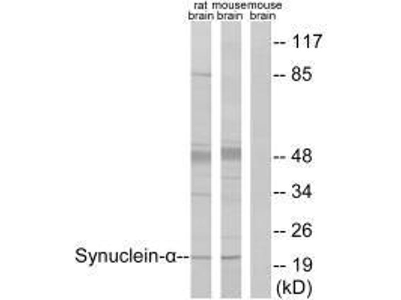 Ueda K., Biochem. Biophys. Res. Commun. 205:1366-1372(1994).Aliases: Alpha synuclein antibody, Alpha-synuclein antibody, Alpha-synuclein, isoform NACP140 antibody, alphaSYN antibody, MGC105443 antibody, MGC110988 antibody, MGC127560 antibody, MGC64356 antibody, NACP antibody, Non A beta component of AD amyloid antibody, Non A4 component of amyloid antibody, Non A4 component of amyloid precursor antibody, Non-A beta component of AD amyloid antibody, Non-A-beta component of alzheimers disease amyloid , precursor of antibody, Non-A4 component of amyloid precursor antibody, Non-A4 component of amyloid, precursor of antibody, OTTHUMP00000218549 antibody, OTTHUMP00000218551 antibody, OTTHUMP00000218552 antibody, OTTHUMP00000218553 antibody, OTTHUMP00000218554 antibody, PARK 1 antibody, PARK 4 antibody, PARK1 antibody, PARK4 antibody, Parkinson disease (autosomal dominant, Lewy body) 4 antibody, Parkinson disease familial 1 antibody, SNCA antibody, Snca synuclein antibody, Snca synuclein, alpha (non A4 component of amyloid precursor) antibody, SYN antibody, Synuclein alpha antibody, Synuclein alpha 140 antibody, Synuclein, alpha (non A4 component of amyloid precursor) antibody, SYUA_HUMAN antibody