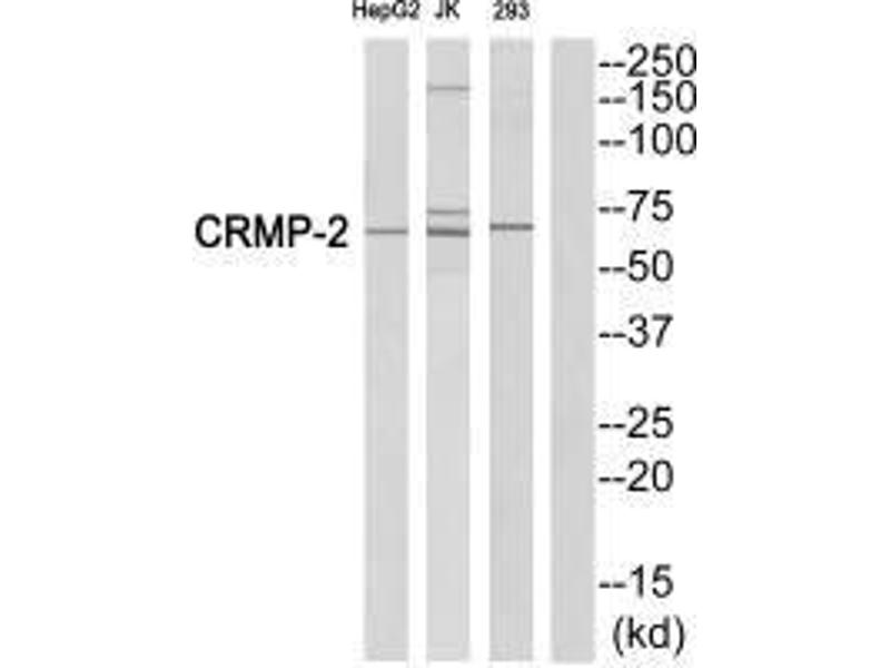 Kitamura K., DNA Res. 6:291-297(1999).Aliases: Collapsin response mediator protein 2 antibody, Collapsin response mediator protein antibody, Collapsin response mediator protein hCRMP 2 antibody, CRAM antibody, CRMP 2 antibody, CRMP-2 antibody, CRMP2 antibody, DHPRP 2 antibody, DHPRP2 antibody, Dihydropyrimidinase 2 antibody, Dihydropyrimidinase like 2 antibody, Dihydropyrimidinase like 2 long form antibody, Dihydropyrimidinase related protein 2 antibody, Dihydropyrimidinase-related protein 2 antibody, DPYL 2 antibody, DPYL2 antibody, DPYL2_HUMAN antibody, DPYSL 2 antibody, Dpysl2 antibody, DRP-2 antibody, DRP2 antibody, Musunc 33 antibody, Musunc33 antibody, N2A3 antibody, TOAD 64 antibody, TOAD64 antibody, ULIP 2 protein antibody, ULIP-2 antibody, Ulip2 antibody, Unc-33-like phosphoprotein 2 antibody