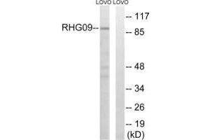 Kawasoe T., Submitted (JUL-1999) to the EMBL/GenBank/DDBJ databases.Aliases: 10C antibody, ARHGAP9 antibody, FLJ16525 antibody, MGC1295 antibody, RGL1 antibody, RHG09_HUMAN antibody, Rho GTPase activating protein 9 antibody, Rho GTPase-activating protein 9 antibody, Rho type GTPase activating protein 9 antibody, Rho-type GTPase-activating protein 9 antibody