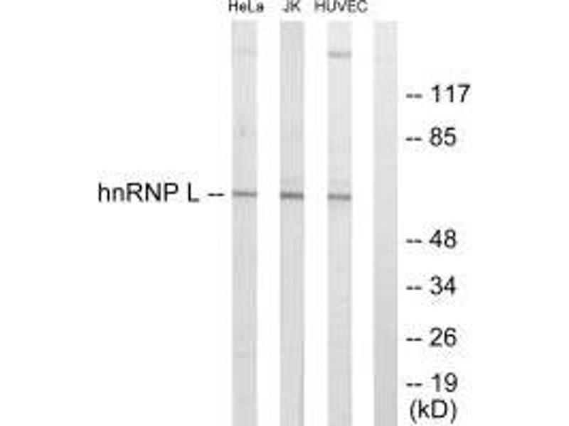 Rasmussen H.H., Electrophoresis 13:960-969(1992).Aliases: D830027H13Rik antibody, FLJ35509 antibody, Heterogeneous nuclear ribonucleoprotein L antibody, hnRNP L antibody, hnRNP-L antibody, Hnrnpl antibody, hnRPL antibody, HNRPL_HUMAN antibody, P/OKcl.14 antibody