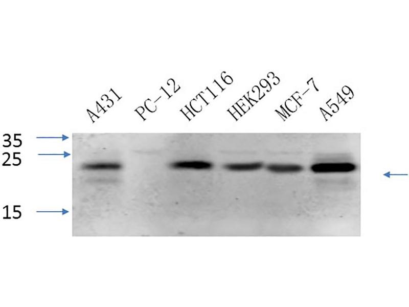 Optimal working dilutions should be determined experimentally by the investigator. Suggested starting dilutions are as follows: WB (1:500-1:2000), IF (1:50-1:300), IHC-P (1:50-1:300), ELISA (1:20000). Not yet tested in other applications.
