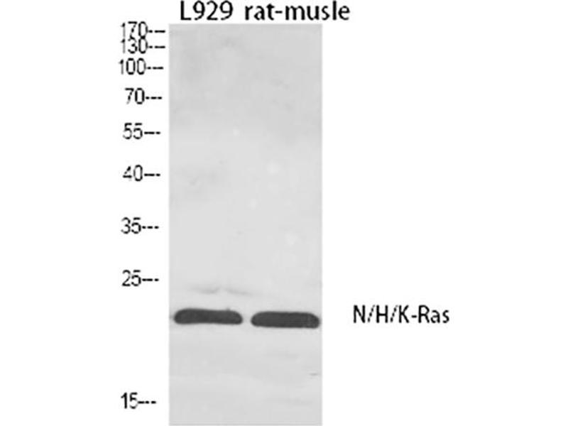Rabbit Anti-N/H/K-Ras Polyclonal Antibody,NRAS, HRAS1, GTPase NRas, Transforming protein N-Ras, HRAS, HRAS1, GTPase HRas, H-Ras-1, Ha-Ras, Transforming protein p21, c-H-ras, p21ras, KRAS, KRAS2, RASK2, GTPase KRas, K-Ras 2, Ki-Ras, c-K-ras, c-Ki-ras,HRAS belongs to the Ras oncogene family, whose members are related to the transforming genes of mammalian sarcoma retroviruses. The products encoded by these genes function in signal transduction pathways. These proteins can bind GTP and GDP, and they have intrinsic GTPase activity. GTPase Hras undergoes a continuous cycle of de- and re-palmitoylation, which regulates its rapid exchange between the plasma membrane and the Golgi apparatus. Mutations in this gene cause Costello syndrome, a disease characterized by increased growth at the prenatal stage, growth deficiency at the postnatal stage, predisposition to tumor formation, mental retardation, skin and musculoskeletal abnormalities, distinctive facial appearance and cardiovascular abnormalities. Defects in this gene are implicated in a variety of cancers, including bladder cancer, follicular thyroid cancer, and oral squamous cell carcinoma. Multiple transcript variants, which encode different isoforms, have been identified for this gene.,GTPase Nras