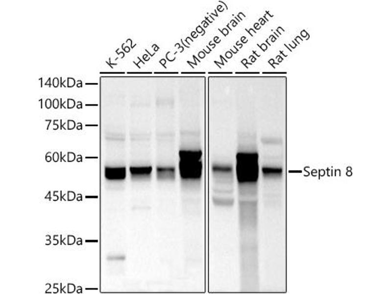 This gene is a member of the septin family of nucleotide binding proteins, originally described in yeast as cell division cycle regulatory proteins. Septins are highly conserved in yeast, Drosophila, and mouse, and appear to regulate cytoskeletal organization. Disruption of septin function disturbs cytokinesis and results in large multinucleate or polyploid cells. Multiple alternatively spliced transcript variants encoding different isoforms have been found for this gene.,SEPT8,42980,SEP2,septin-8,Cell Biology & Developmental Biology,Cell Cycle,Immunology & Inflammation,Cytokines,8-Sep