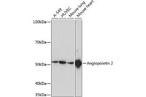 The protein encoded by this gene is an antagonist of angiopoietin 1 (ANGPT1) and endothelial TEK tyrosine kinase (TIE-2, TEK). The encoded protein disrupts the vascular remodeling ability of ANGPT1 and may induce endothelial cell apoptosis. Three transcript variants encoding three different isoforms have been found for this gene. [provided by RefSeq, Jul 2008],AGPT2, ANG2,Angiogenesis,Cardiovascular,Cell Biology & Developmental Biology,Growth factors,ANGPT2