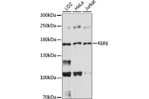 - This gene encodes a member of the atrophin family of arginine-glutamic acid (RE) dipeptide repeat-containing proteins. The encoded protein co-localizes with a transcription factor in the nucleus, and its overexpression triggers apoptosis. A similar protein in mouse associates with histone deacetylase and is thought to function as a transcriptional co-repressor during embryonic development. Multiple transcript variants encoding different isoforms have been found for this gene.,RERE,ARG,ARP,ATN1L,DNB1,NEDBEH,Epigenetics & Nuclear Signaling,Transcription Factors,Cell Biology & Developmental Biology,Apoptosis,Caspases,RERE
