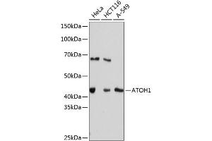 This protein belongs to the basic helix-loop-helix (BHLH) family of transcription factors. It activates E-box dependent transcription along with E47. [provided by RefSeq, Jul 2008],ATH1, HATH1, MATH-1, bHLHa14,Apoptosis,Cell Biology & Developmental Biology,Epigenetics & Nuclear Signaling,Neuroscience,Stem Cells,Transcription Factors,ATOH1