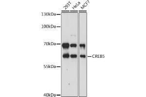 The product of this gene belongs to the CRE (cAMP response element)-binding protein family. Members of this family contain zinc-finger and bZIP DNA-binding domains. The encoded protein specifically binds to CRE as a homodimer or a heterodimer with c-Jun or CRE-BP1, and functions as a CRE-dependent trans-activator. Alternatively spliced transcript variants encoding different isoforms have been identified.,CREB5,CRE-BPA,CREB-5,Epigenetics & Nuclear Signaling,Transcription Factors,Neuroscience,Neurodegenerative Diseases,CREB5