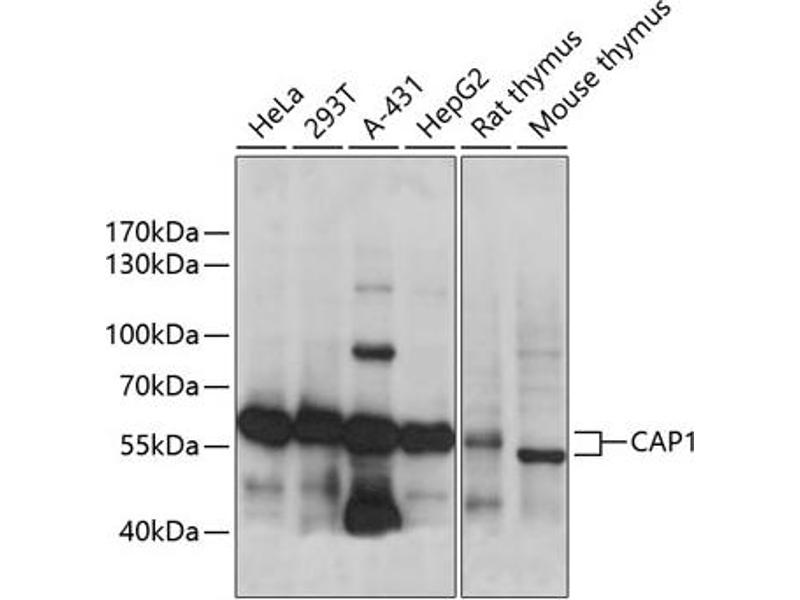- A synthetic peptide corresponding to a sequence within amino acids 1-100 of human CAP1 (NP_006358.1).