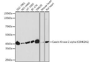 L’anticorps Lapin Monoclonal anti-CSNK2A1/CK II alpha a été validé pour WB. Il convient pour détecter CSNK2A1/CK II alpha dans des échantillons de Humain.