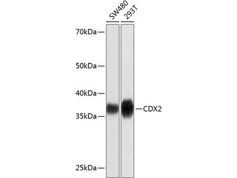 - This gene is a member of the caudal-related homeobox transcription factor gene family. The encoded protein is a major regulator of intestine-specific genes involved in cell growth an differentiation. This protein also plays a role in early embryonic development of the intestinal tract. Aberrant expression of this gene is associated with intestinal inflammation and tumorigenesis. [provided by RefSeq, Jan 2012],CDX2,CDX-3,CDX2/AS,CDX3,Cell Biology & Developmental Biology,Epigenetics & Nuclear Signaling,Stem Cells,Transcription Factors,CDX2