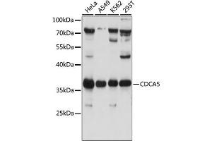 Regulator of sister chromatid cohesion in mitosis stabilizing cohesin complex association with chromatin. May antagonize the action of WAPL which stimulates cohesin dissociation from chromatin. Cohesion ensures that chromosome partitioning is accurate in both meiotic and mitotic cells and plays an important role in DNA repair. Required for efficient DNA double-stranded break repair.,CDCA5,SORORIN,sororin,Epigenetics & Nuclear Signaling,Cell Biology & Developmental Biology,Cell Cycle,CDCA5