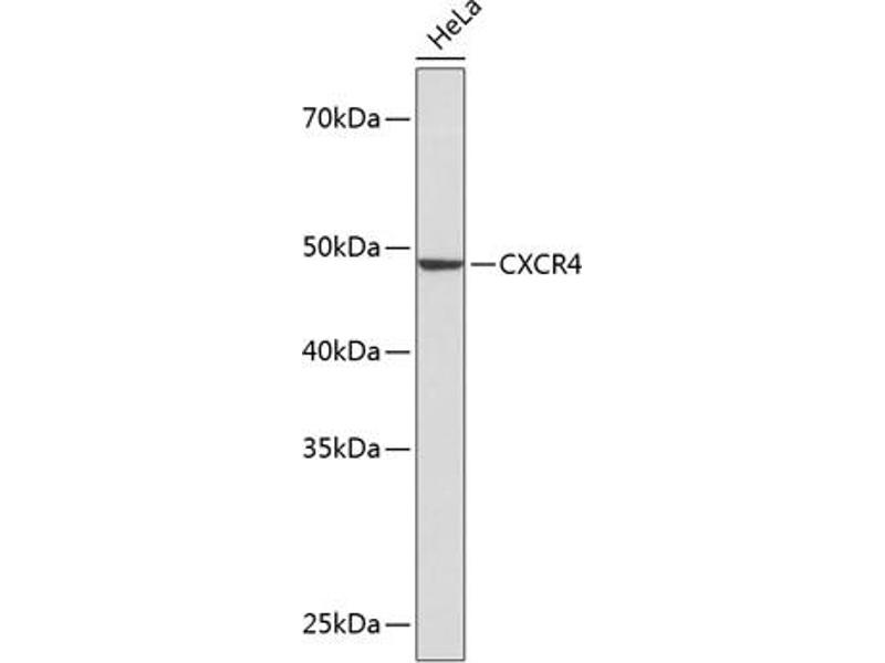 This gene encodes a CXC chemokine receptor specific for stromal cell-derived factor-1. The protein has 7 transmembrane regions and is located on the cell surface. It acts with the CD4 protein to support HIV entry into cells and is also highly expressed in breast cancer cells. Mutations in this gene have been associated with WHIM (warts, hypogammaglobulinemia, infections, and myelokathexis) syndrome. Alternate transcriptional splice variants, encoding different isoforms, have been characterized. [provided by RefSeq, Jul 2008],CD184,D2S201E,FB22,HM89,HSY3RR,LAP-3,LAP3,LCR1,LESTR,NPY3R,NPYR,NPYRL,NPYY3R,WHIM,WHIMS,CXCR4,Angiogenesis,Apoptosis,Cancer,Cardiovascular,CDs,Cell Biology & Developmental Biology,Cell Intrinsic Innate Immunity Signaling Pathway,Endocrine & Metabolism,Endothelial Progenitors,ErbB-HER Signaling Pathway,G protein signaling,G protein signaling_G-Protein-Coupled Receptors(GPCR),Hematopoietic Progenitors,Immunology & Inflammation,Innate Immunity_Chemokines,Neural Stem Cells,Neuroscience,Signal Transduction,Stem Cells,CXCR4