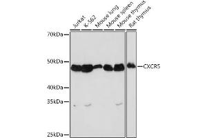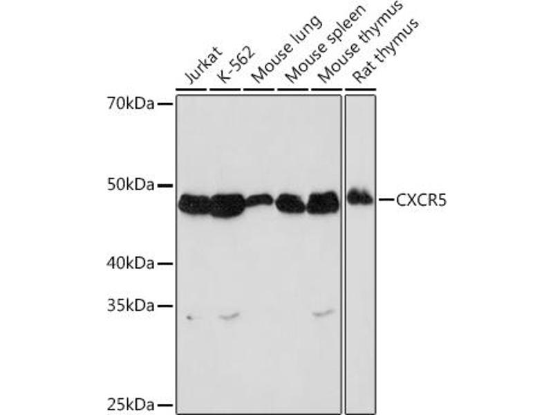 This gene encodes a multi-pass membrane protein that belongs to the CXC chemokine receptor family. It is expressed in mature B-cells and Burkitt's lymphoma. This cytokine receptor binds to B-lymphocyte chemoattractant (BLC), and is involved in B-cell migration into B-cell follicles of spleen and Peyer patches. Alternatively spliced transcript variants encoding different isoforms have been described for this gene. [provided by RefSeq, Aug 2011],BLR1, CD185, MDR15,Blood,Cancer,Cardiovascular,CDs,Cell Intrinsic Innate Immunity Signaling Pathway,G protein signaling,G protein signaling_G-Protein-Coupled Receptors(GPCR),Immunology & Inflammation,Innate Immunity_Chemokines,Signal Transduction,CXCR5