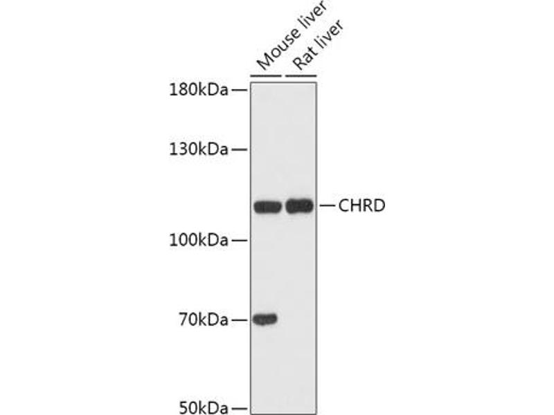 This gene encodes a secreted protein that dorsalizes early vertebrate embryonic tissues by binding to ventralizing TGF-beta-like bone morphogenetic proteins and sequestering them in latent complexes. The encoded protein may also have roles in organogenesis and during adulthood. It has been suggested that this gene could be a candidate gene for Cornelia de Lange syndrome. Reduced expression of this gene results in enhanced bone regeneration. Alternative splicing results in multiple transcript variants. Other alternative splice variants have been described but their full length sequence has not been determined. [provided by RefSeq, Jan 2015],CHRD,Cell Biology & Developmental Biology,Neuroscience,Stem Cells,CHRD