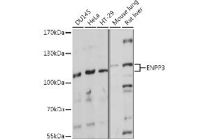 The protein encoded by this gene belongs to a series of ectoenzymes that are involved in hydrolysis of extracellular nucleotides. These ectoenzymes possess ATPase and ATP pyrophosphatase activities and are type II transmembrane proteins. Expression of the related rat mRNA has been found in a subset of immature glial cells and in the alimentary tract. The corresponding rat protein has been detected in the pancreas, small intestine, colon, and liver. The human mRNA is expressed in glioma cells, prostate, and uterus. Expression of the human protein has been detected in uterus, basophils, and mast cells. Two transcript variants, one protein coding and the other non-protein coding, have been found for this gene.,ENPP3,B10,CD203c,NPP3,PD-IBETA,PDNP3,Immunology & Inflammation,CD markers,ENPP3