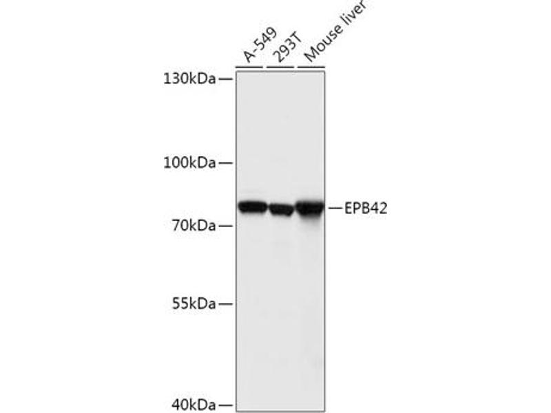 Erythrocyte membrane protein band 4.2 is an ATP-binding protein which may regulate the association of protein 3 with ankyrin. It probably has a role in erythrocyte shape and mechanical property regulation. Mutations in the EPB42 gene are associated with recessive spherocytic elliptocytosis and recessively transmitted hereditary hemolytic anemia. Alternatively spliced transcript variants encoding different isoforms have been found for this gene. [provided by RefSeq, Jul 2008],PA,SPH5,EPB42,Cardiovascular,Blood,EPB42