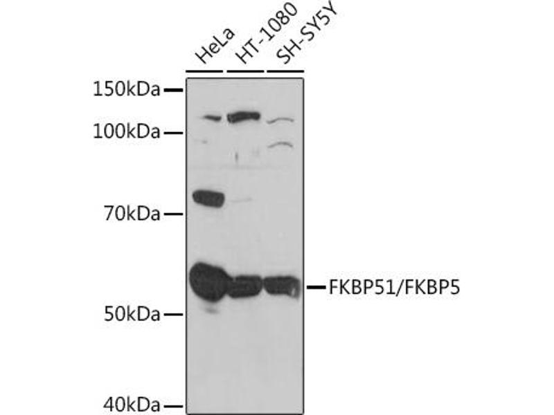 The protein encoded by this gene is a member of the immunophilin protein family, which play a role in immunoregulation and basic cellular processes involving protein folding and trafficking. This encoded protein is a cis-trans prolyl isomerase that binds to the immunosuppressants FK506 and rapamycin. It is thought to mediate calcineurin inhibition. It also interacts functionally with mature hetero-oligomeric progesterone receptor complexes along with the 90 kDa heat shock protein and P23 protein. This gene has been found to have multiple polyadenylation sites. Alternative splicing results in multiple transcript variants.[provided by RefSeq, Mar 2009],AIG6, FKBP51, FKBP54, P54, PPIase, Ptg-10,Epigenetics & Nuclear Signaling,Immunology & Inflammation,Signal Transduction,FKBP5
