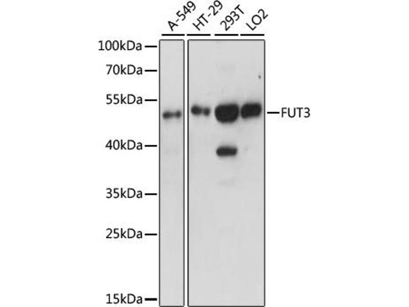 - A synthetic peptide corresponding to a sequence within amino acids 1-100 of human FUT3 (NP_000140.1).