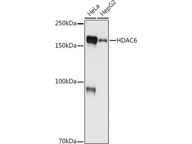 Histones play a critical role in transcriptional regulation, cell cycle progression, and developmental events. Histone acetylation/deacetylation alters chromosome structure and affects transcription factor access to DNA. The protein encoded by this gene belongs to class II of the histone deacetylase/acuc/apha family. It contains an internal duplication of two catalytic domains which appear to function independently of each other. This protein possesses histone deacetylase activity and represses transcription. [provided by RefSeq, Jul 2008],CPBHM, HD6, JM21, PPP1R90,Autophagy,Cell Biology & Developmental Biology,Cell Cycle,Epigenetics & Nuclear Signaling,G1/S Checkpoint,Immunology & Inflammation,NF-kB Signaling Pathway,Notch Signaling Pathway,Signal Transduction,Stem Cells,Wnt/β-Catenin Signaling Pathway,HDAC6